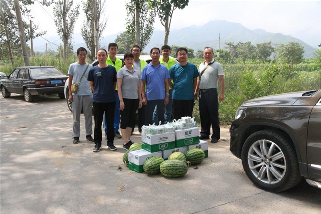 夏日炎炎送清涼,情意暖暖感人心。近日來(lái),三門(mén)峽氣溫不斷升高,項(xiàng)目一線施工人員每日頂著炎炎烈日,堅(jiān)守在自己的工作崗位上,兢兢業(yè)業(yè)。為預(yù)防高溫引發(fā)中暑,做好防暑降溫工作,確保廣大員工身體健康和生產(chǎn)安全。8月2日,三門(mén)峽市昌通路橋建設(shè)有限責(zé)任公司總經(jīng)理王軍紅帶隊(duì)領(lǐng)有關(guān)領(lǐng)導(dǎo)分別到國(guó)道310南移項(xiàng)目部及省道312項(xiàng)目部開(kāi)展“防暑降溫送清涼”慰問(wèn)活動(dòng),慰問(wèn)堅(jiān)守在項(xiàng)目一線施工干部職工?,F(xiàn)場(chǎng)給項(xiàng)目一線施工人員送去了防暑降溫藥品(藿香正氣水、風(fēng)油精、人丹)、礦泉水和西瓜。為奮戰(zhàn)在烈日炎炎下的項(xiàng)目一線施工人員提供“綠色安全保護(hù)傘”,確保職工的身心健康。