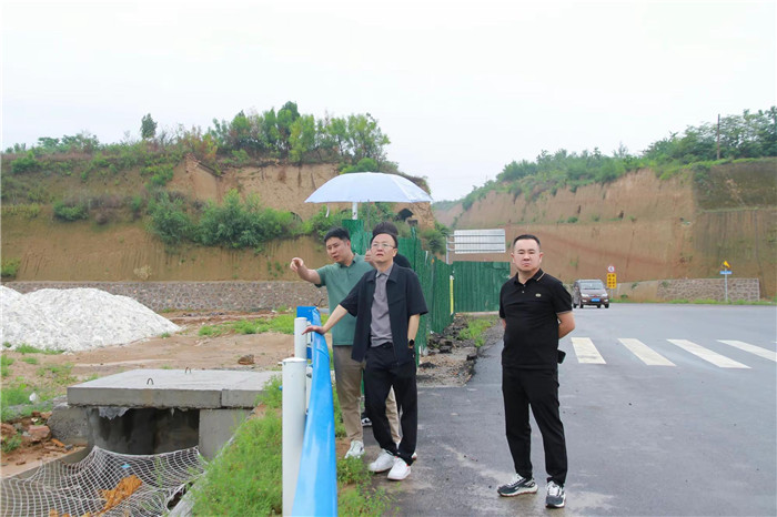 7月8日,副市長(zhǎng)秦迎軍, 市政府辦公室副主任張法強(qiáng),市交通運(yùn)輸局副局長(zhǎng)任江源,市公路中心黨委書(shū)記、主任周鵬,總工趙兵一行深入東環(huán)路3號(hào)支線項(xiàng)目一線,實(shí)地督導(dǎo)檢查防汛安全和道路保通保暢工作,認(rèn)真聽(tīng)取現(xiàn)場(chǎng)負(fù)責(zé)同志的情況匯報(bào),詳細(xì)了解雨水天氣道路防汛安全、應(yīng)急保通及各項(xiàng)安全措施落實(shí)等情況,并就做好防汛備汛及安全保通等工作提出具體要求。昌通路橋總經(jīng)理趙鑫,副總經(jīng)理孫博陪同。隨后,趙總、孫總至南山大道引線項(xiàng)目現(xiàn)場(chǎng),實(shí)地查看雨水天氣道路通行及邊溝排水情況。