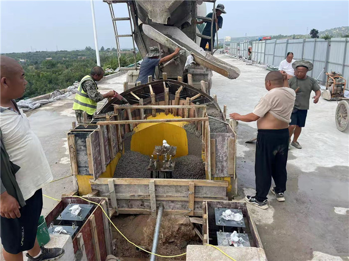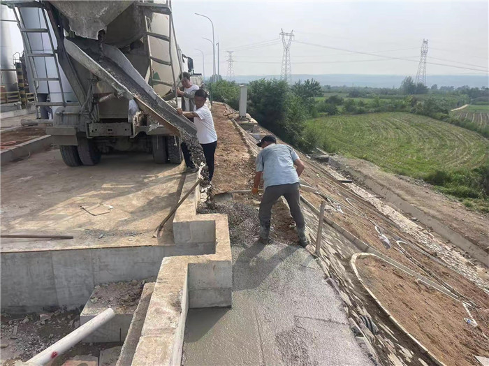 三門(mén)峽西收費(fèi)站防撞島、收費(fèi)道、路肩澆筑混凝土
