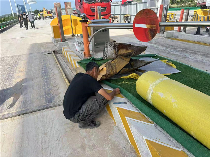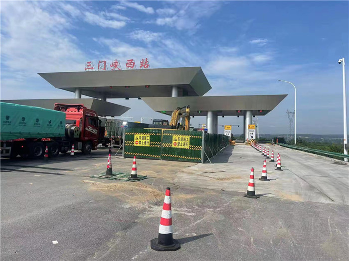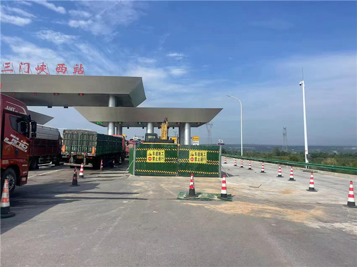三門(mén)峽西收費(fèi)站3、4號(hào)車道圍擋扎設(shè)完成