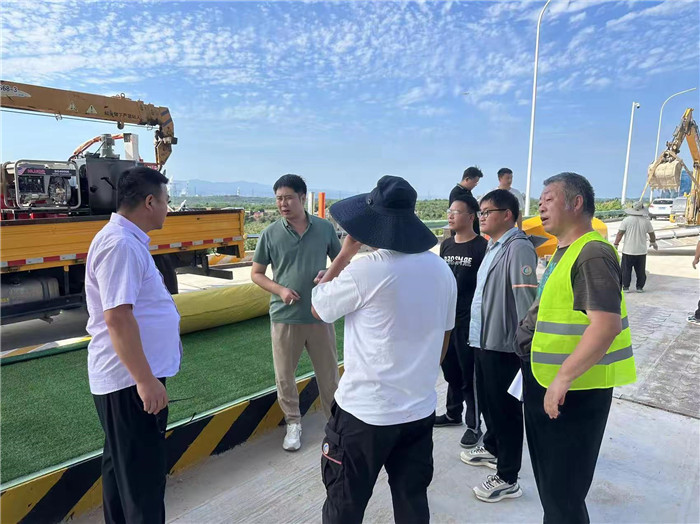 7月2日,公路事業(yè)發(fā)展中心養(yǎng)護(hù)科張紅雁、趙志偉、總監(jiān)劉克輝一行至S244線G209跨線橋改造項(xiàng)目,查看橋臺(tái)改造、新建橋梁下部結(jié)構(gòu)施工進(jìn)展,現(xiàn)場(chǎng)確定原244橋2#橋臺(tái)頂升施工準(zhǔn)備工作,要求鋼支撐頂升施工做好數(shù)據(jù)監(jiān)測(cè)記錄,確保施工安全。
