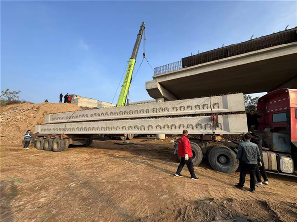 大壩向第一跨空心板預(yù)制梁架設(shè)